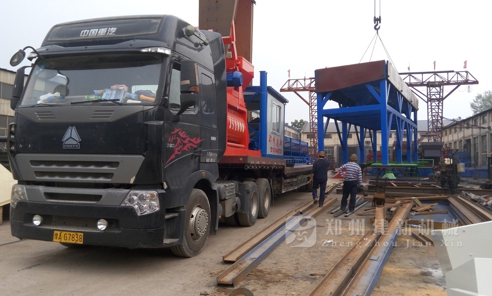 安徽用戶6月下旬的HZS50攪拌站訂單,7月14日發(fā)貨,圖為建新廠家裝車過程。